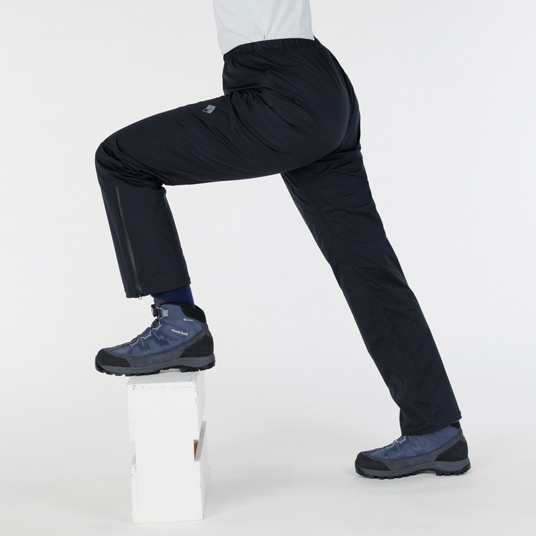 【特長】アクアテクト®ジッパー(サイド) / はっ水ジッパー(フロント) / ボトムジッパー(靴を履いたままパンツの着脱はできません) / サムエシステム / 立体裁断(膝) / 裾内側の摩耗強度を向上 / フロントジッパー付き / ネームタグ付き / スタッフバッグ付き