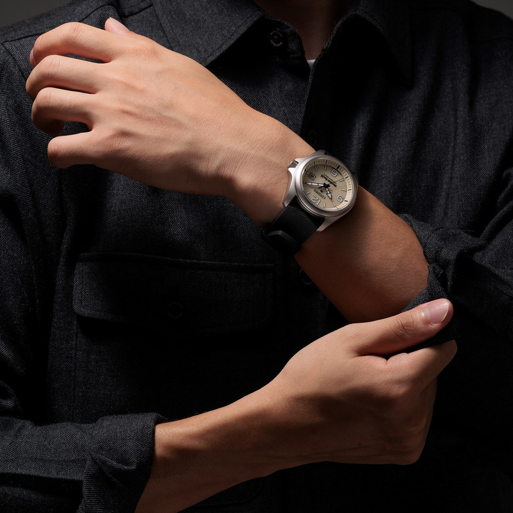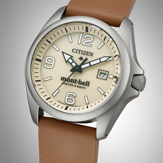 ケースとメタルバンドにはキズに強く、軽く、肌にやさしく、サビにくいスーパーチタニウム™1を採用。シチズン独自の表面硬化技術デュラテクトMRK2 を施し、すりキズのみだけではなく打ちキズから時計を守ります。バンドは、カーフバンドとシリコンラバーバンドに簡単に付け替えられ、日常使いとアウトドアアクティビティどちらにも対応できるモデルです。