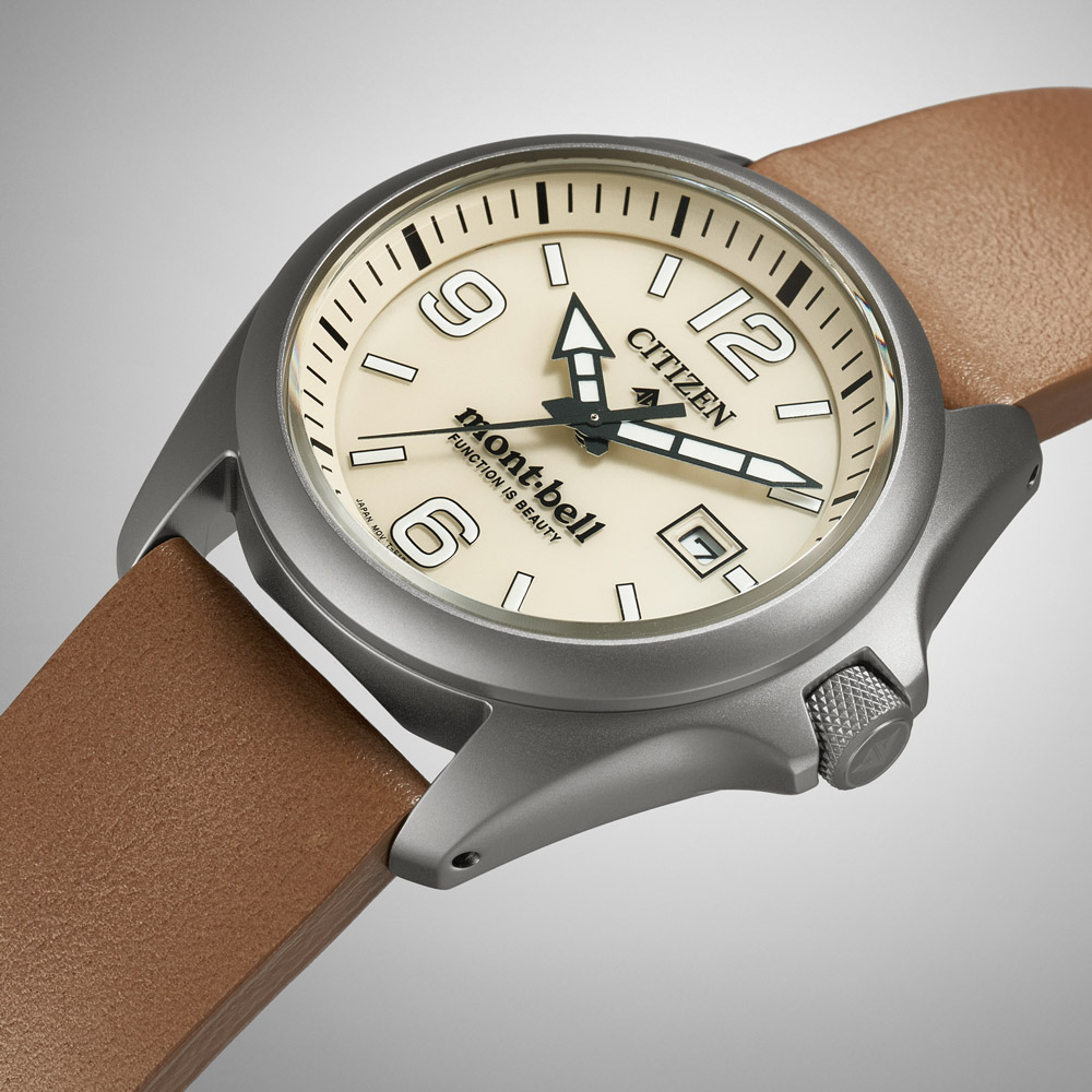 シチズン「PROMASTER」とのコラボレーションモデル第5弾! アウトドアのハードな環境を耐え抜くタフさ、昼夜を問わない高い視認性、簡単な操作性、シンプルながらも優れた実用性を備えています。背面からの浸水を防ぐ裏ぶたレスのモノコック構造ケースにより、タフさと同時になめらかな質感や時計美としての魅力を引き出しています。