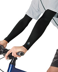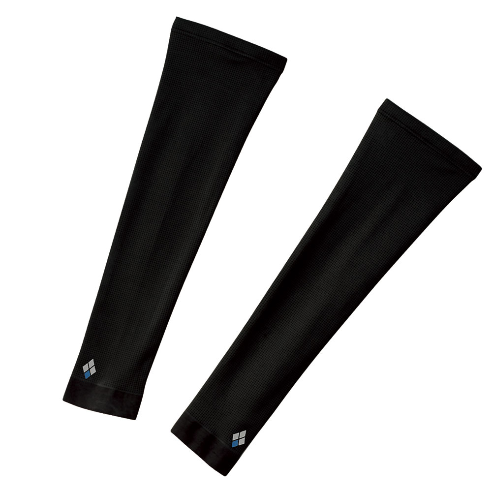 風通しがよく涼しい付け心地のアームカバーです。高機能素材ジオライン®をメッシュ地に編み上げ、蒸れにくさと速乾性を実現。腕回りにはソフトなゴムを用い、袖口には肌当たりのよい「ヘム使い」を採用することで、自然なフィット感に仕上げています。