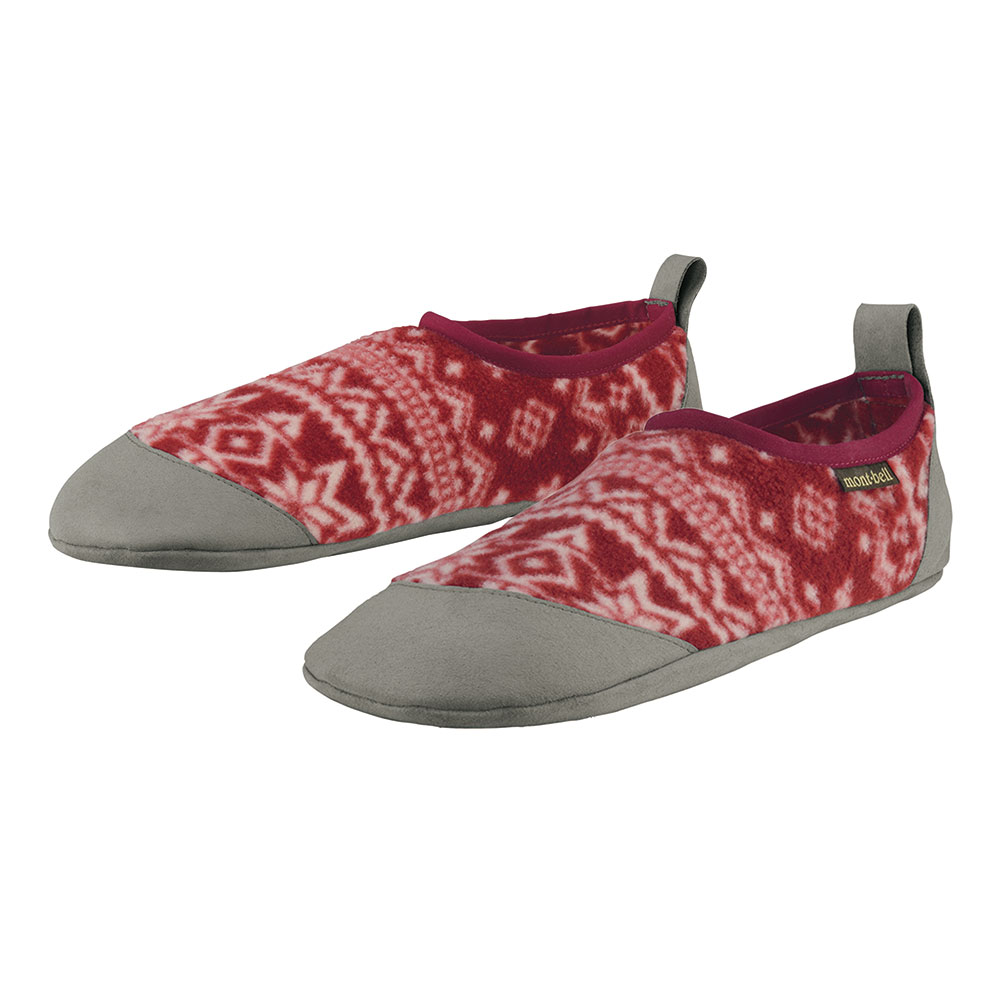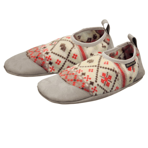 乗り物での移動時や宿泊先などで便利な防寒シューズに、華やかな柄をあしらったモデルです。付属のスタッフバッグに収納すればジャケットのポケットに収まるほどコンパクトになります。