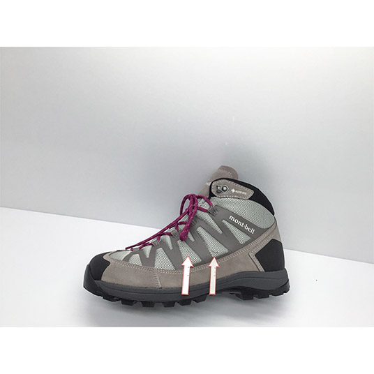アッパーには世界最高レベルの防水透湿性を誇るゴアテックスファブリクスを使用し、メッシュと組み合わせることで優れた透湿性を実現。スエードレザーと樹脂のシートで補強を施し、ガレ場や砂地にも対応する耐久性を備えています。