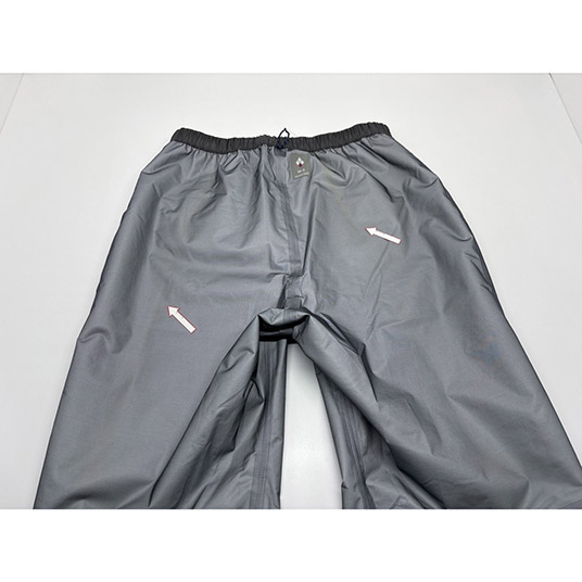 【特長】アクアテクト®ジッパー(サイド) / はっ水ジッパー(フロント) / ロングボトムジッパー / サムエシステム / 立体裁断(膝)/ 裾内側の摩耗強度を向上 / フロントジッパー付き / ネームタグ付き / スタッフバッグ付き