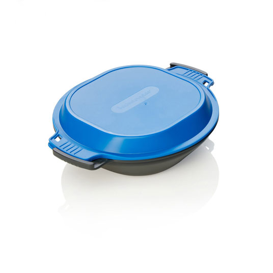 深皿と蓋、カトラリー、つまようじのセットです。深皿はカトラリーですくいやすいデザインになっており、底は持った時に熱が伝わりにくい波状になっています。深皿と蓋は持ち手同士を固定することができ、付属カトラリーは蓋のふちに固定し収納することができます。蓋は浅めのお皿としても使用できます。