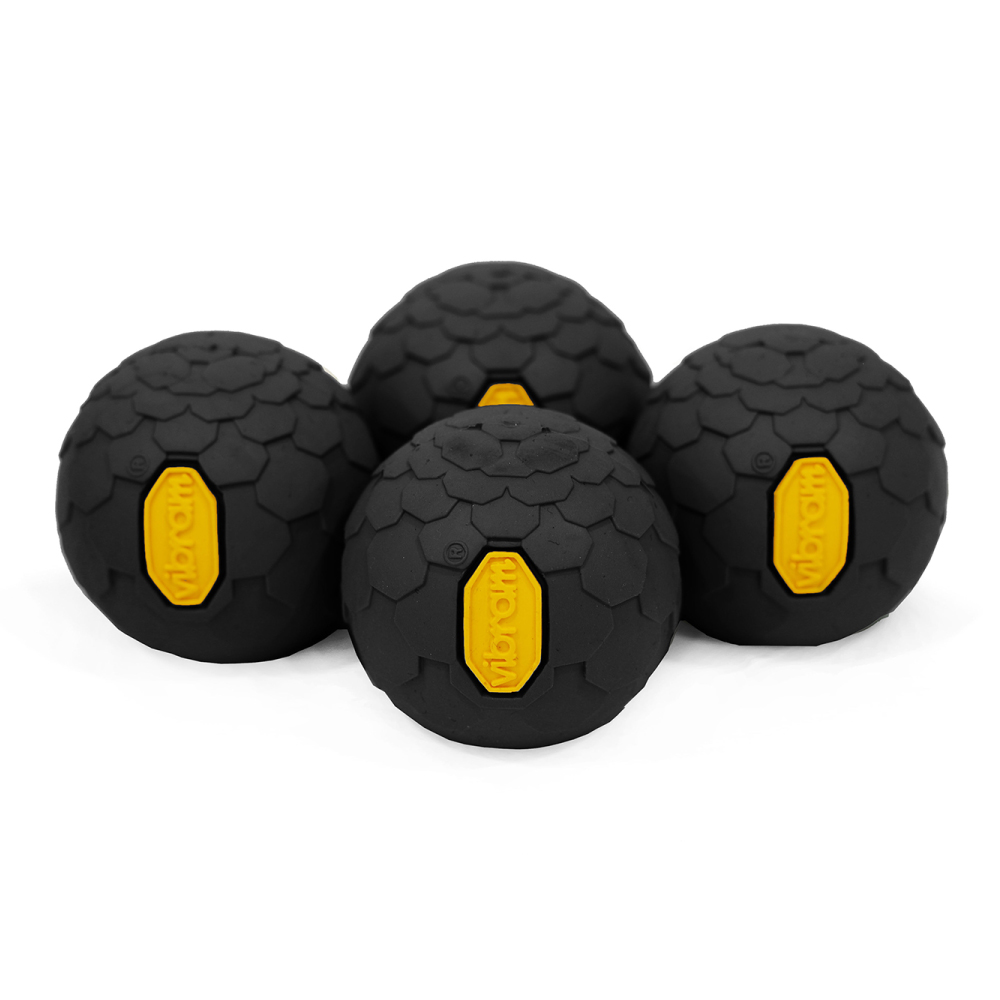 ヴィブラム®社製のゴムを使用したボールフィート。脚先にボリュームをもたせることで、石のすきまへの落ち込みや砂地での沈み込みを防ぐパーツです。(4個セット)