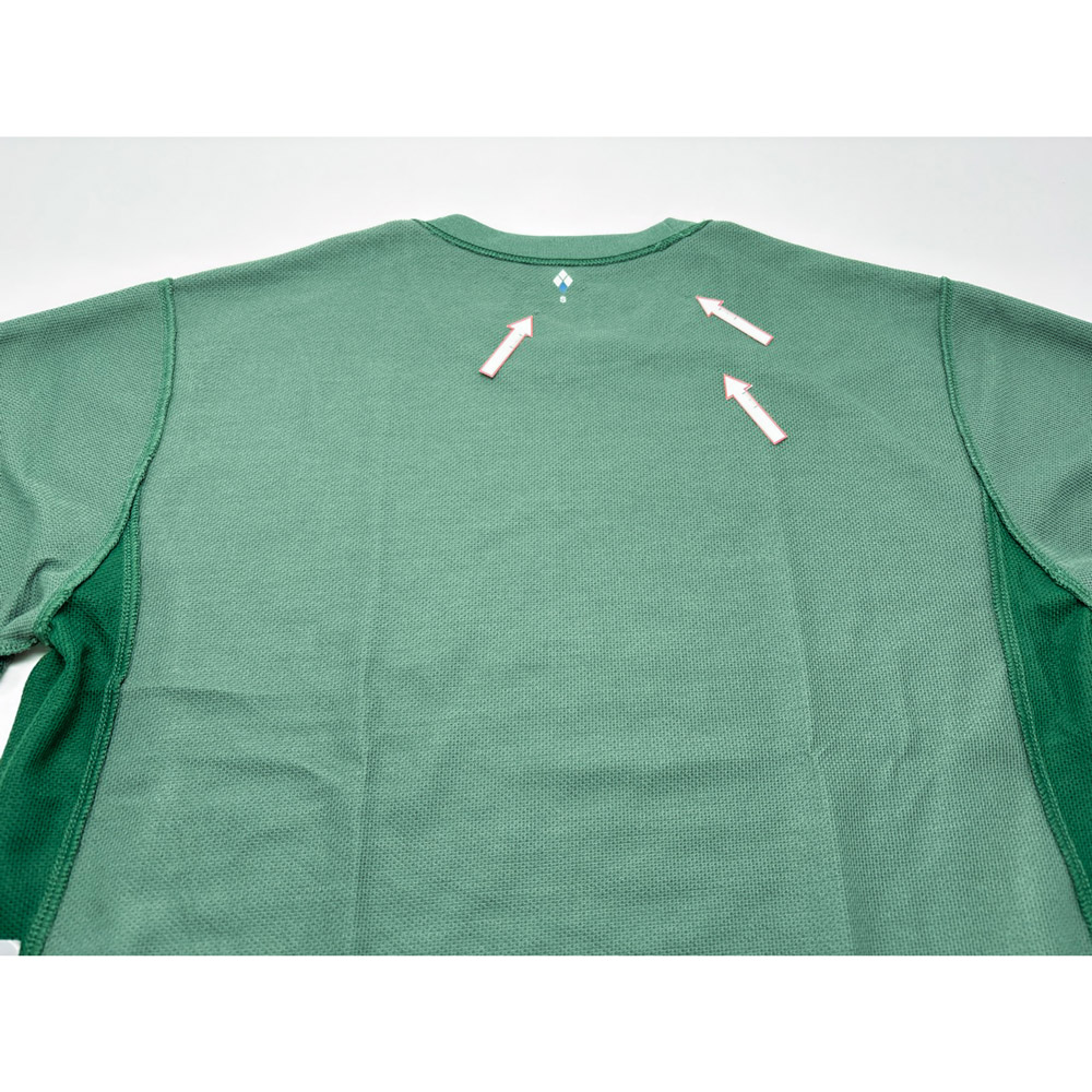 蒸れを放出する通気性と、体温低下を防ぐ空気層を備えた、汗冷えしにくいTシャツです。春夏のトレッキングでは一枚で行動着として、秋冬にはインナーとして活躍します。適度に体にフィットするアクティブなシルエットです。