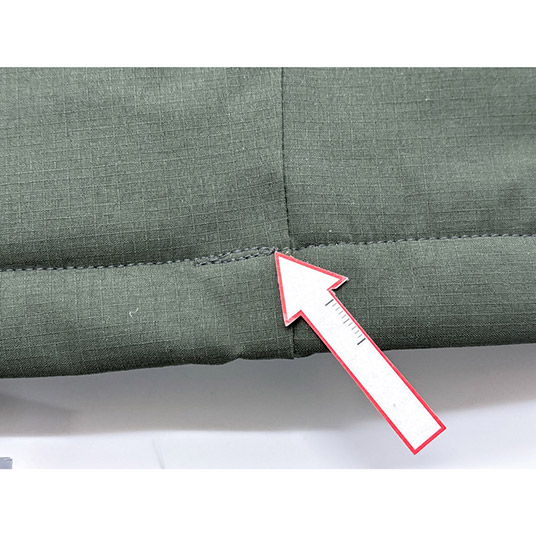 裾まわり:ストレート(裾が登山靴に被る形状で、裾から泥や小石などが入りにくい)