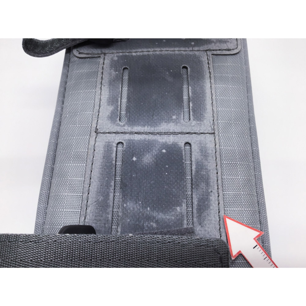 トップチューブやハンドルステムにベルクロで簡単に取り付けできるポーチです。上部にはスマートフォンの収納に適したポケットを配置。タッチパネルの操作も可能で、荷室にはバッテリーのコードが引き出せるスリットを設けています。車のライトなどを反射して光るロゴが夜間の視認性を高めます。