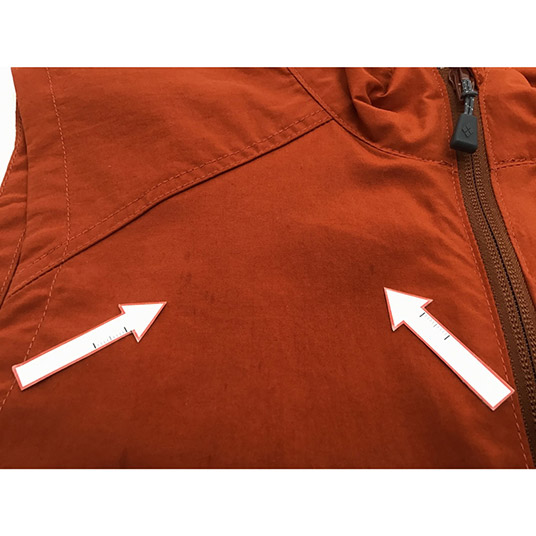 【特長】ジッパー付きポケット3個(胸1、腰2)/ジッパーがあごに当たらない仕様/リードインコード・システム(すそ)