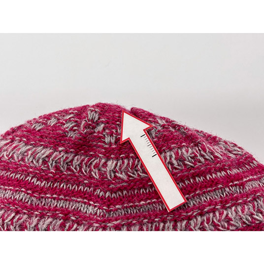 天頂部にポンポンをあしらった、かわいらしいキャップです。暖かなウールを混紡したニット地ですが、手洗いによる洗濯が可能です。
