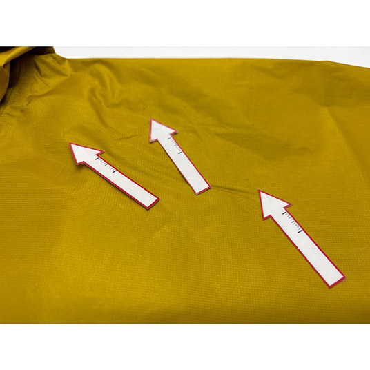 モンベルでは、レインウエアに求められる耐水圧20,000mm以上をクリアした素材のみを使用しています。