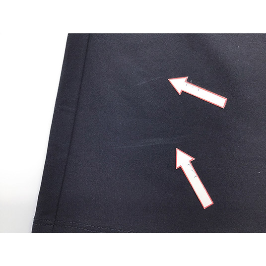 外観から見えない箇所にペンで印をつける、品質表示タグに切り込みを入れるなど、訳あり品であることを特定するために、使用上の問題がない箇所に目印を施しています。「訳あり」箇所とは異なりますので、あらかじめご了承ください。