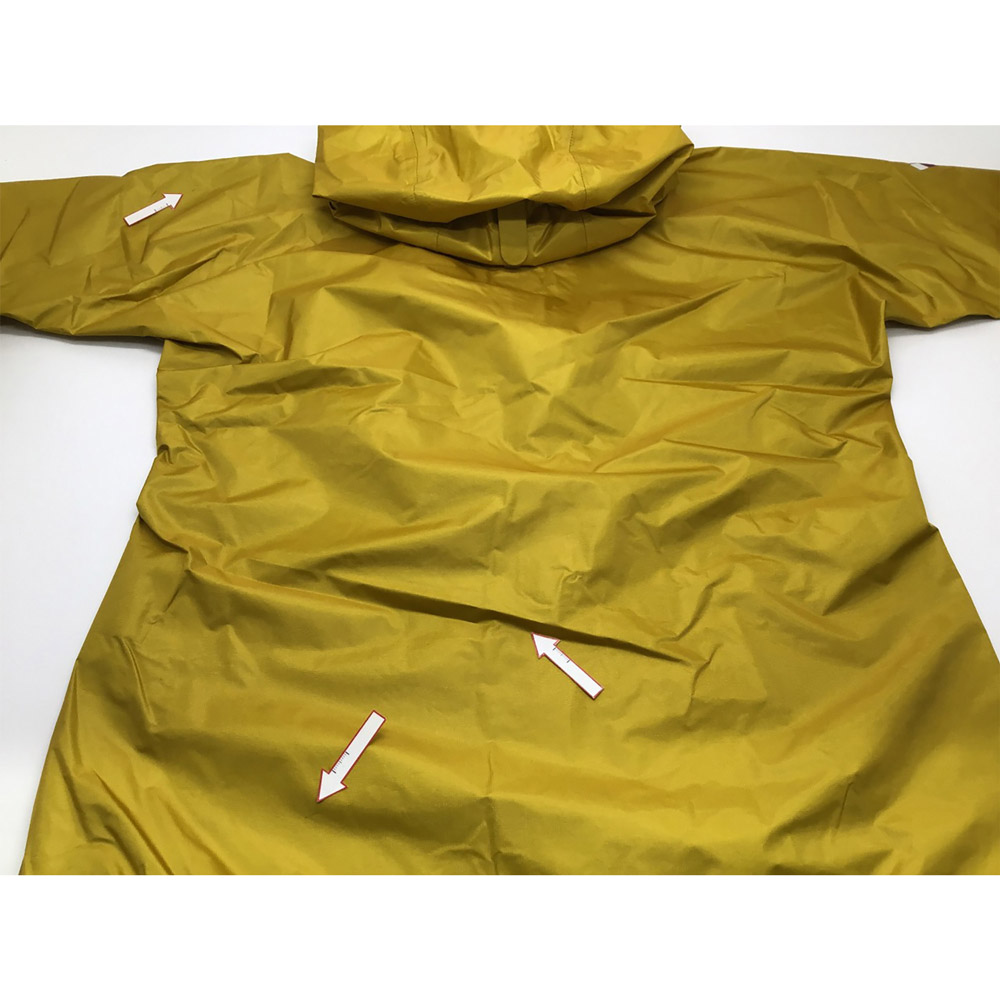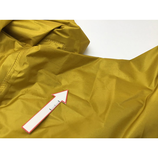 モンベルでは、レインウエアに求められる耐水圧20,000mm以上をクリアした素材のみを使用しています。