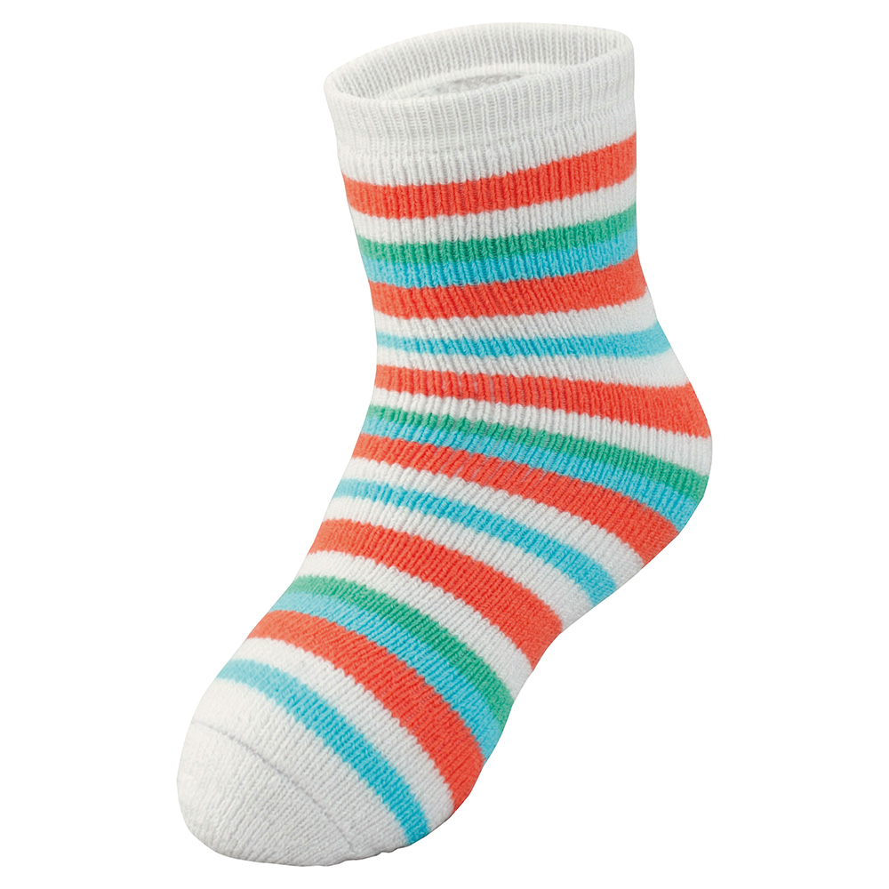 暖かく、心地よい肌触りのメリノウールを使用したソックスです。発汗量に応じて湿度が調節されるので、常に靴の中を快適な状態に保ちます。また、全面をパイル地に仕上げているので、クッション性に優れた柔らかな履き心地です。かかとの位置を固定しないデザインを採用。成長に合わせて16cmまでの足サイズに対応します。