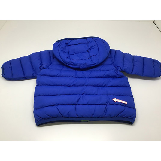 【特長】フード取り外し可能 / フードのベルクロでひさしの高さを調節可能 / シングルキルト構造 / ダウンプルーフ加工 / スタッフバッグ付き / ネームタグ付き