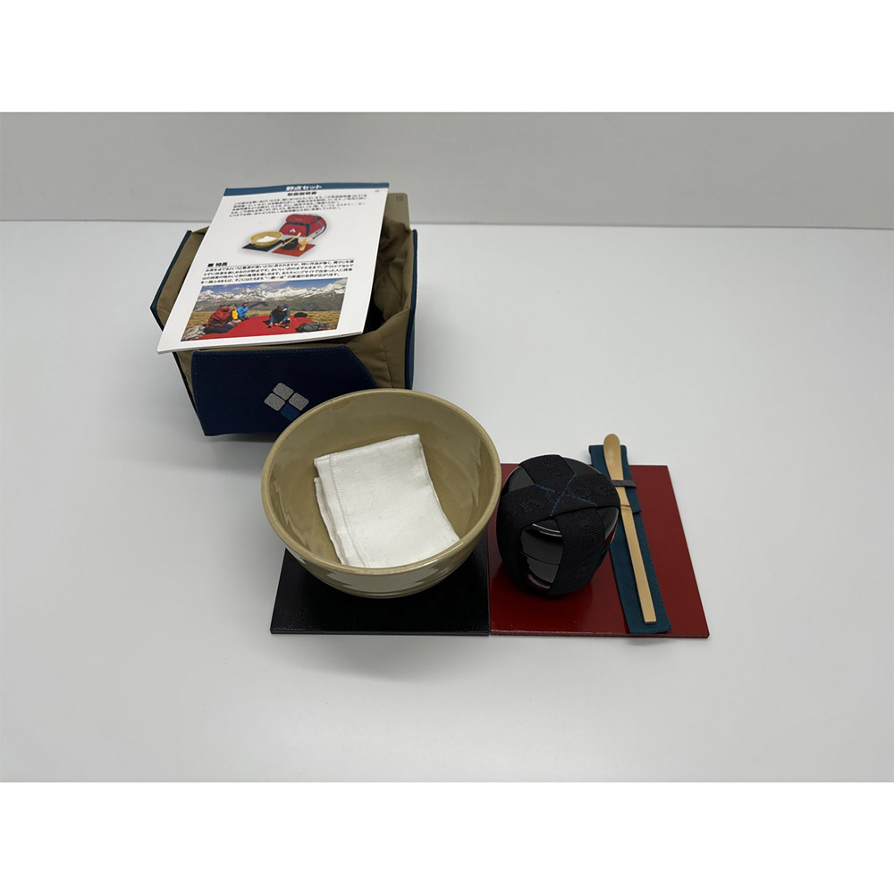 コンパクトな携帯用野点セットです。茶せん、茶杓、いずれも携帯性を重視してサイズを小さくした特別仕様。茶碗はメラミン製で割れにくく、アウトドアに最適です。巾着の底部と側面には緩衝材としてスポンジを入れてあります。