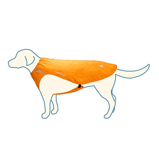 雨から愛犬を守る簡易的なレインウエアです。急な雨でもさっと着せることができ、背中をしっかりカバーします。首回りはドローコードで、胴回りはエラスティックテープでフィット感を調節可能。背面首元にリーシュを通せる穴があるため、カラー(首輪)の上から着用できます。夜間のお散歩でも安全な反射マーク付き。収納袋付き。※縫い目に防水処理(シームテープ)は施していません。