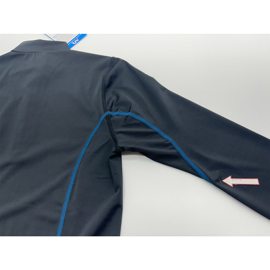 擦り傷などのけがや日焼けからの肌の保護に大変有効で、世界最高レベルのはっ水性により、体の冷えを防ぐ長袖のジップシャツです。縫製箇所が少なく、抜群の運動性とごろつき感のない着心地を実現しています。フロントジッパーは首から胸まで開閉でき、素早い体温調節や容易な着脱が可能です。