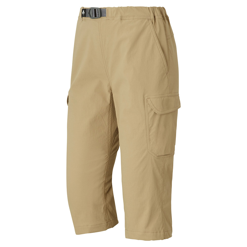 ストレッチ性とはっ水性を備えた生地を使用した薄手の膝下丈パンツです。サイドのカーゴポケットは収納力に優れ、尻部分は生地を二重にして補強しています。適度なハリ・コシを備え、汚れや水をはじくので、登山やキャンプなどさまざまなシーンで活躍。春から秋に着用できます。