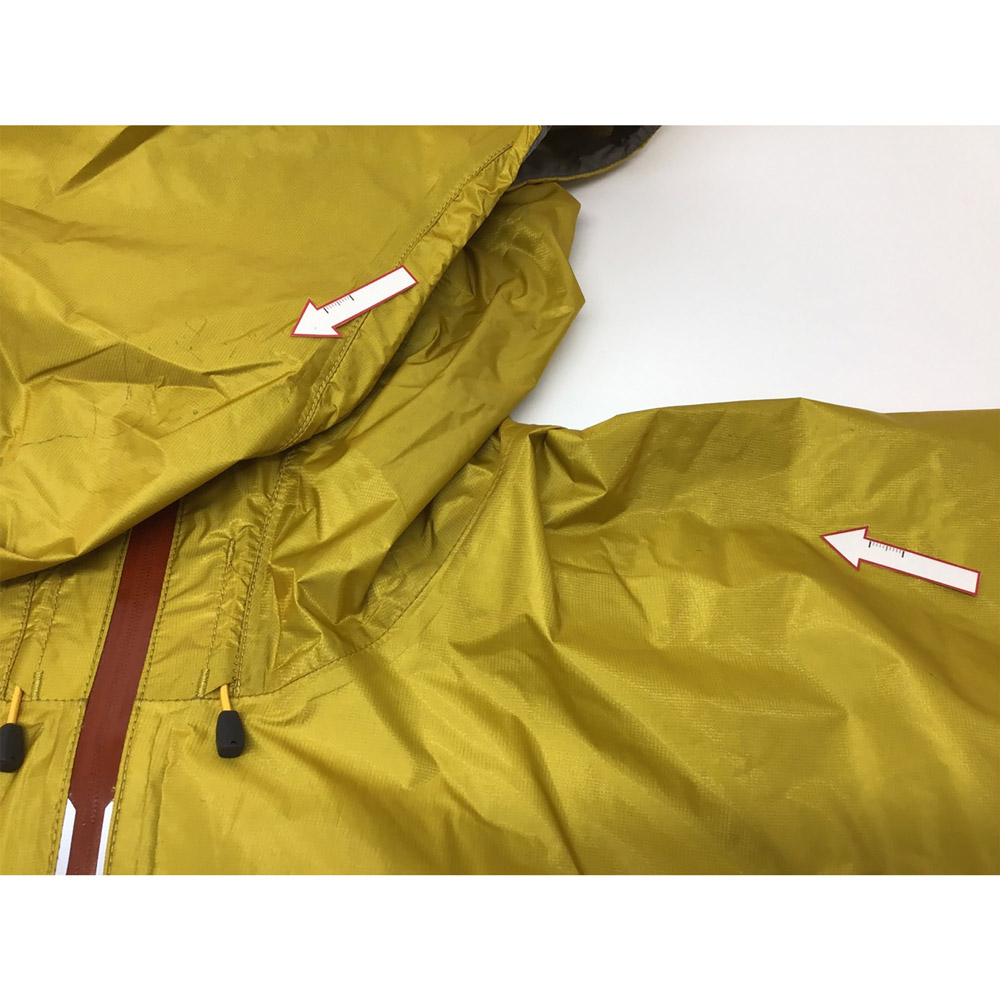 モンベルでは、レインウエアに求められる耐水圧20,000mm以上をクリアした素材のみを使用しています。