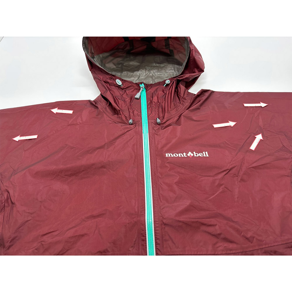 モンベルでは、レインウエアに求められる耐水圧20,000mm以上をクリアした素材のみを使用しています。
