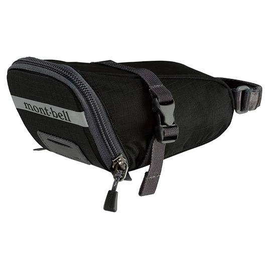 工具類などの収納に適したサドル用の軽量ポーチです。乗り降りやペダリングの妨げにならないコンパクトなフォルムでありながら、開口部が大きく開くため収納物の出し入れが容易。シートピラーにベルクロテープを巻き付け、サドルレールにバックル付きベルトを留めるだけで簡単に装着することができます。車のライトなどを反射して光るプリント、バックライトホルダー付き。