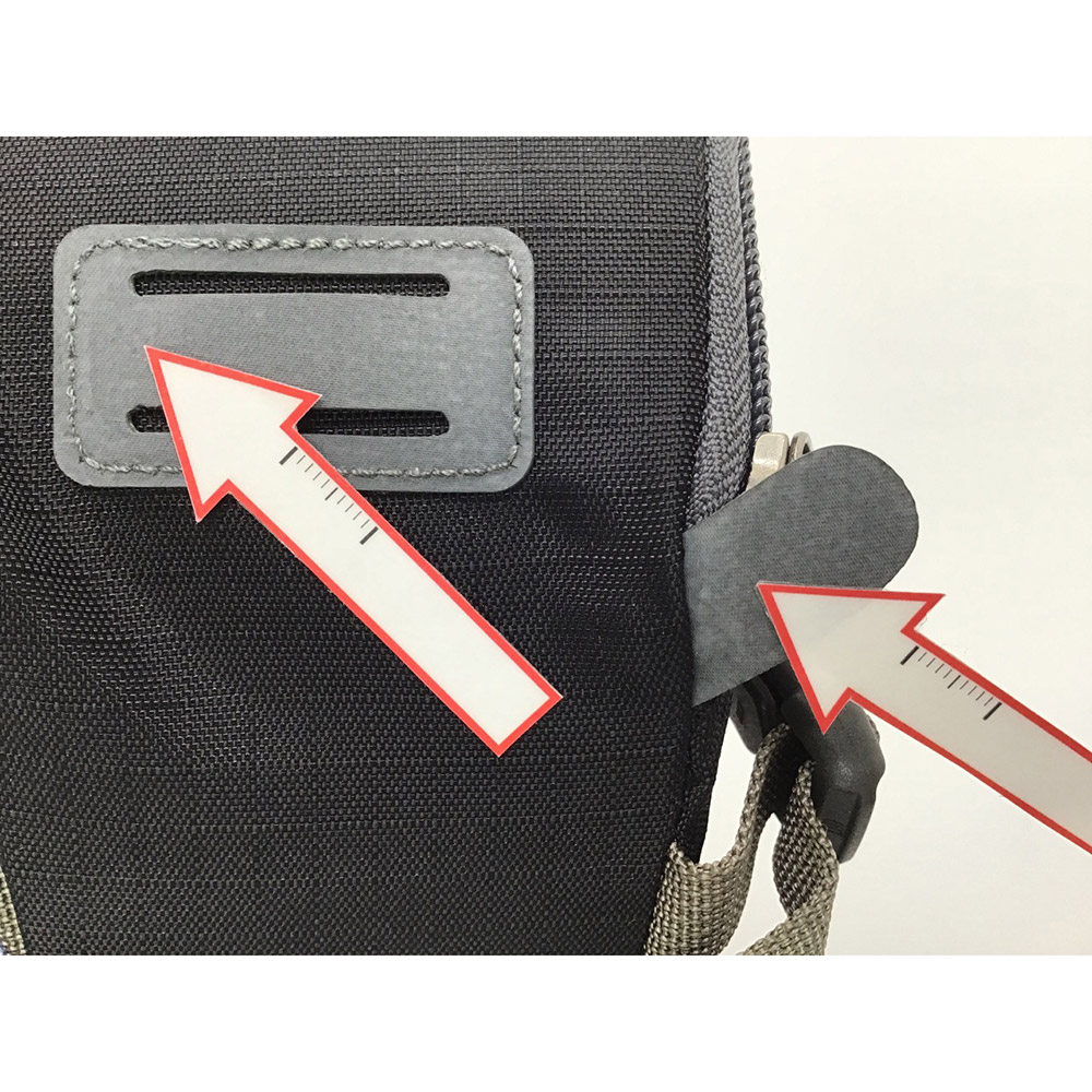工具類などの収納に適したサドル用の軽量ポーチです。乗り降りやペダリングの妨げにならないコンパクトなフォルムでありながら、開口部が大きく開くため収納物の出し入れが容易。シートピラーにベルクロテープを巻き付け、サドルレールにバックル付きベルトを留めるだけで簡単に装着することができます。車のライトなどを反射して光るプリント、バックライトホルダー付き。