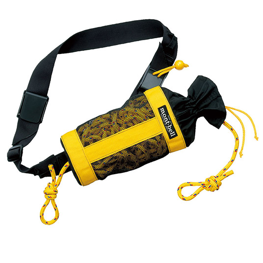 軽量で水抜けが良いロープバッグです。浮力体を内蔵し水に浮く仕様。水に浮くフローティングロープ、腰に装着するためのベルトを装着しています。