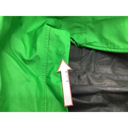 モンベルでは、レインウエアに求められる耐水圧20,000mm以上をクリアした素材のみを使用しています。