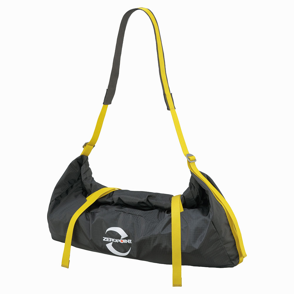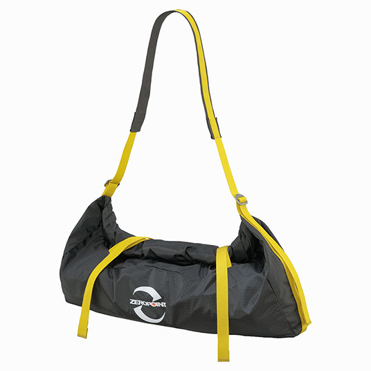 60mまでのロープを収納可能。バックパックを背負っていても、運びやすいショルダータイプの軽量ロープバッグです。