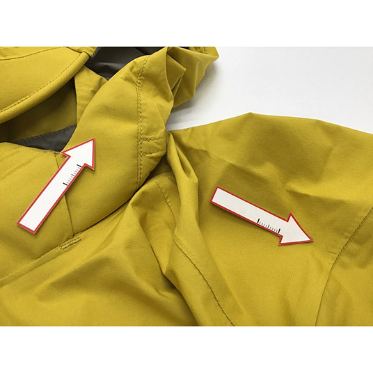 モンベルでは、レインウエアに求められる耐水圧20,000mm以上をクリアした素材のみを使用しています。