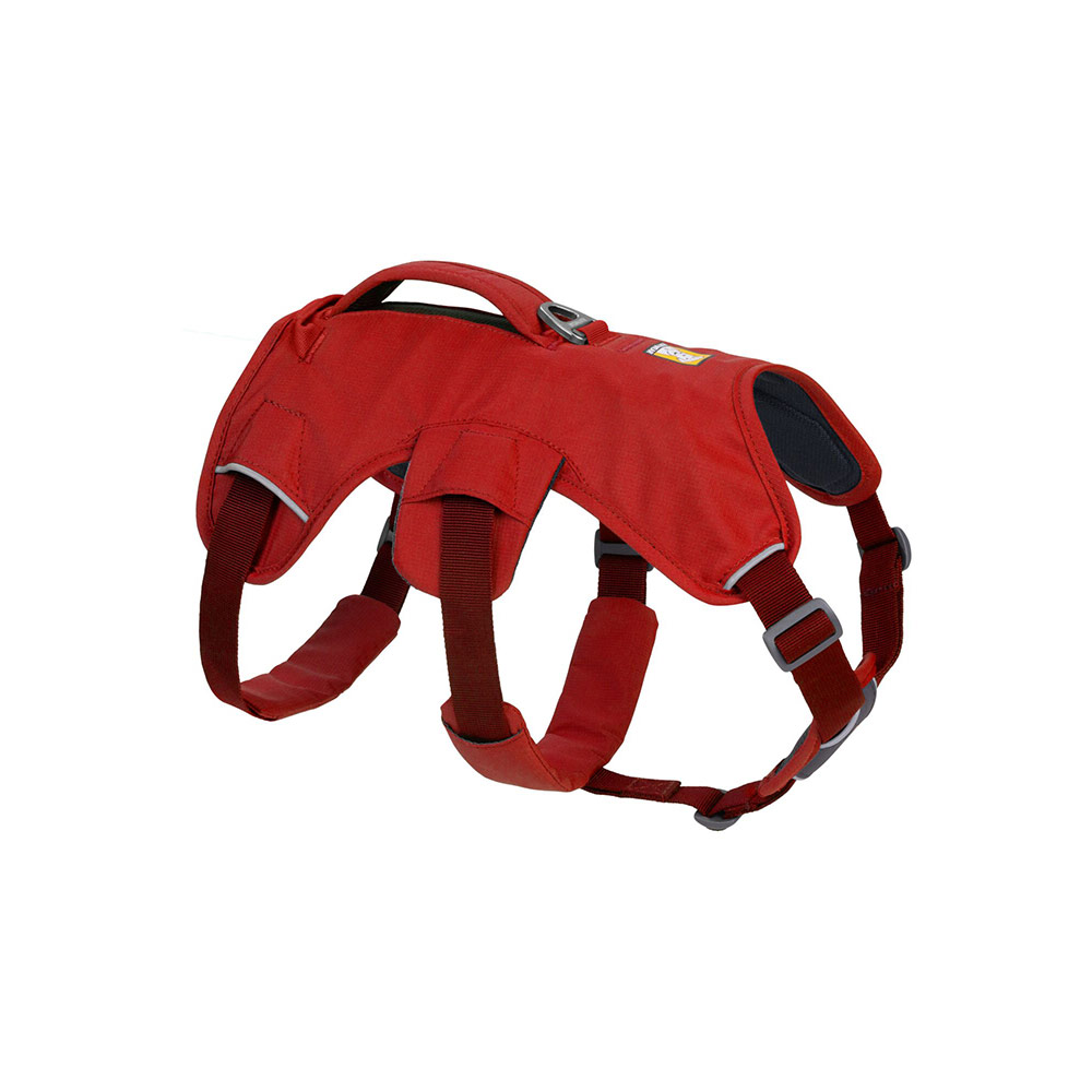 補助ハンドル付きのハーネスです。ハーネス全体に入ったスリットによりフィット感が高く、胸にある5カ所のバックルでさらにフィット感を調節することができます。体を包み込むようなデザインで、愛犬を持ち上げる際の体への負担を最小限に抑えています。2か所のリード取り付けポイントとビーコン装着用のループを備えます。普段使いからアウトドア、老犬の介護まで、様々なシーンで活躍します。