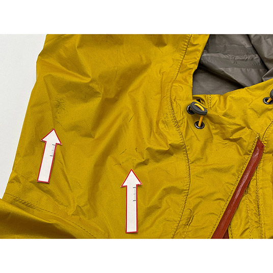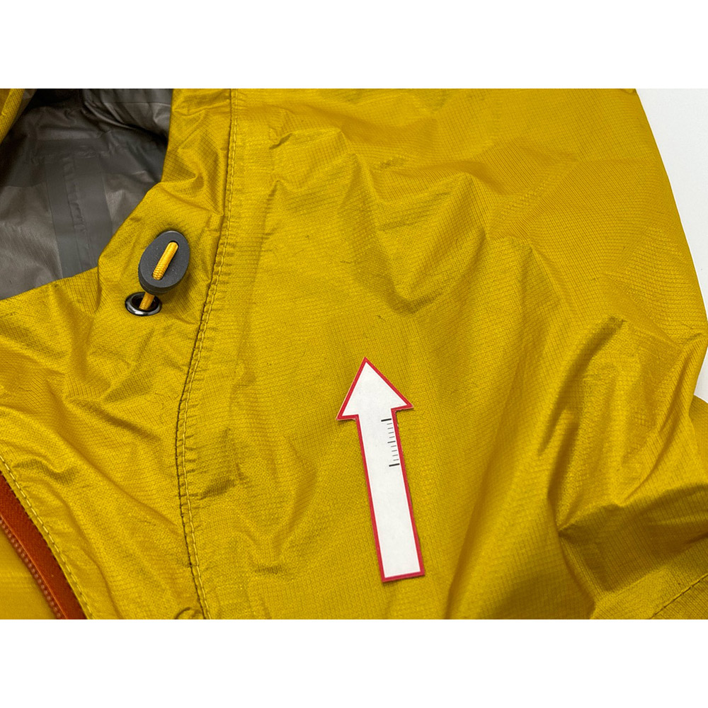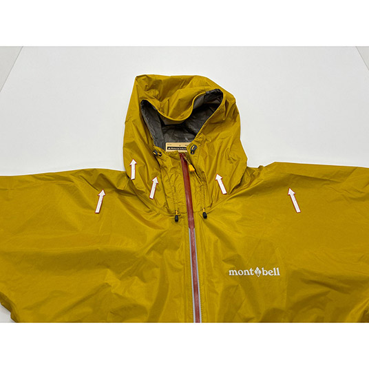 モンベルでは、レインウエアに求められる耐水圧20,000mm以上をクリアした素材のみを使用しています。