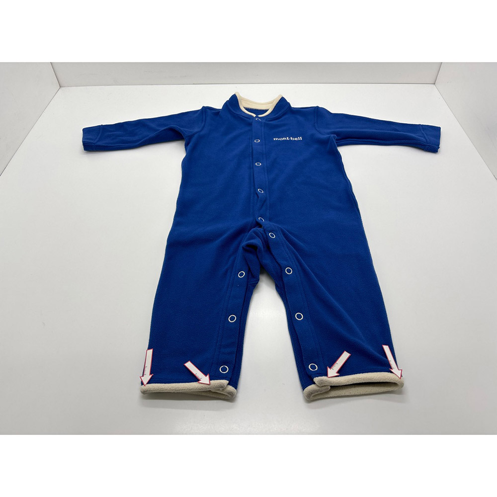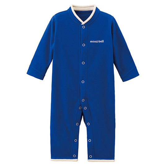 肌触りがたいへん優しい薄手のフリース地を使用したカバーオールです。スナップボタンで襟口からすそまで全開できるので、脱ぎ着やおむつ替えも簡単です。ご家庭で手軽に洗濯でき、すぐに乾きます。
