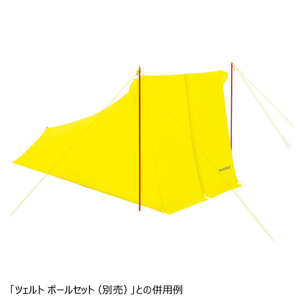 座った際に頭まわりの高さに余裕を持たせ、足元を低くした独自の形状により、居住性と軽量性を両立。充分な奥行きを持ち、緊急時には2人まで就寝ができるツェルトです。生地には防水加工を施した超軽量素材、入口にはファスナーフラップを使用。全ての縫い目にシームテープ処理を施すことで、優れた防水性を実現しています。酸欠を防ぐため、ベンチレーションは完全には閉まらないように設計しています。別売の「ツェルト ポールセット」やお持ちの「トレッキングポール」を使用して設営します。スタッフバッグ付き。