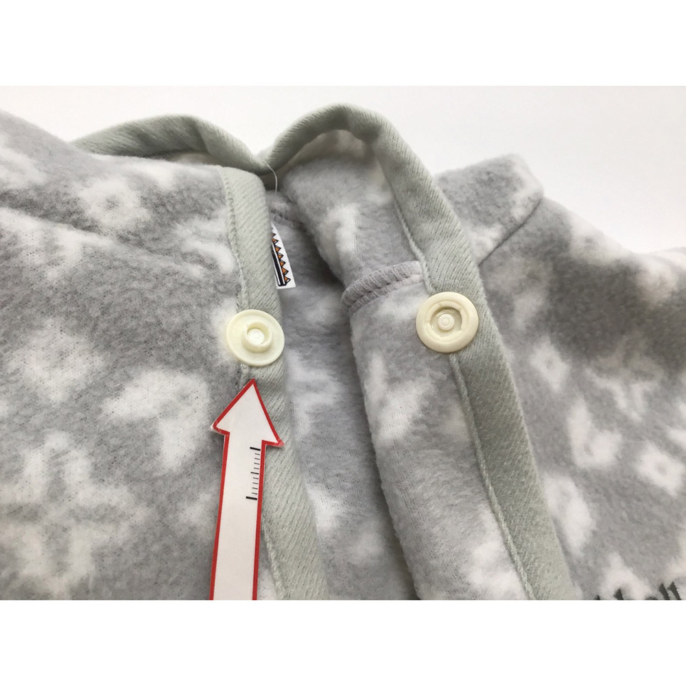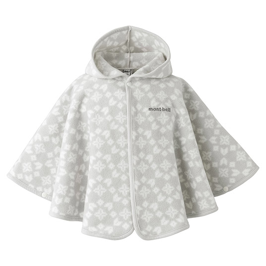 高い保温性とストレッチ性に優れた薄手のフリース素材「クリマプラス®100」を使用した、軽くて暖かいプリント柄のマントです。脱ぎ着はスナップボタンで簡単に行え、おくるみのように使用したり、お出掛けの際に羽織らせたりと、成長に合わせた使い方が可能です。全身を覆うゆったりとしたサイズ。サイドのスナップボタンを留め、手を出すと、手が隠れなくなる仕様なので、歩き始めたお子さまの万が一の転倒の際にも、地面に手をつく動作を妨げません。