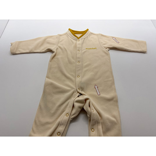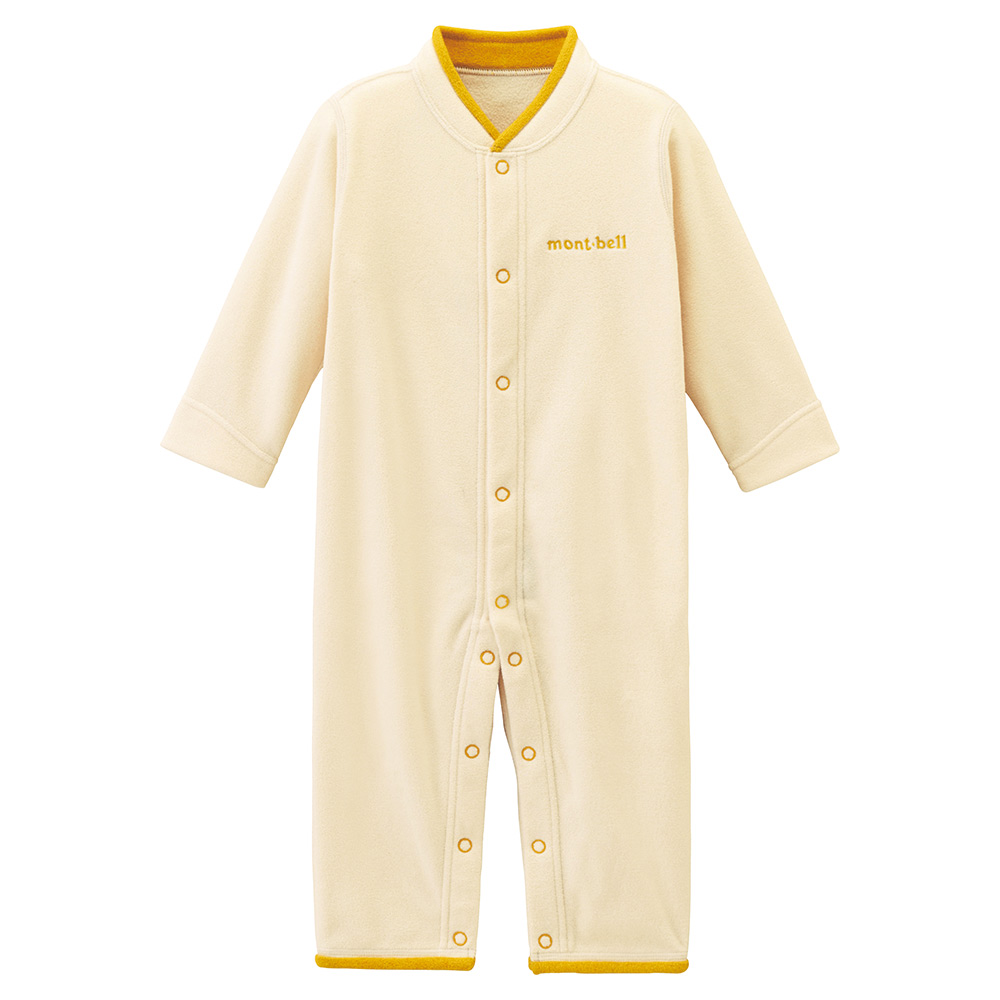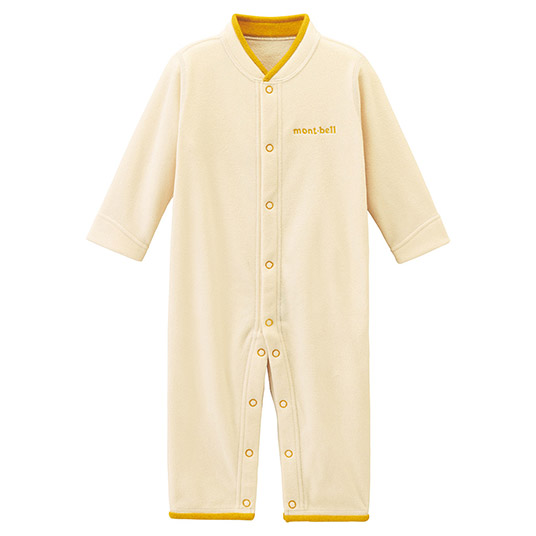 肌触りがたいへん優しい薄手のフリース地を使用したカバーオールです。スナップボタンで襟口からすそまで全開できるので、脱ぎ着やおむつ替えも簡単です。ご家庭で手軽に洗濯でき、すぐに乾きます。