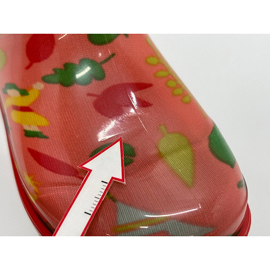 雨の日のお出かけや泥遊びに最適な軽量レインブーツです。アウトソールは濡れた地面でも滑りにくい独自のパターンです。脱ぎやすいヒールブロック付き。可愛らしいイラストをあしらっています。