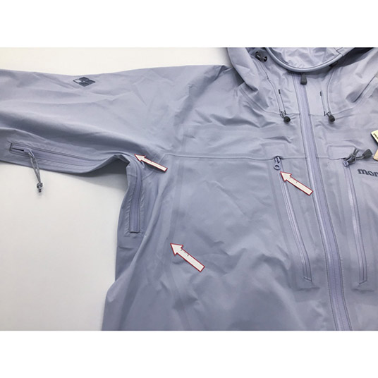 脇に衣服内の汗の蒸れを素早く逃がすことができるベンチレーションを配した高機能モデル。軽量性と耐久性に優れる防水透湿メンブレンを使用した「ゴアテックスファブリクス」を採用し、運動量が多い場面で活躍します。アクセスしやすい胸ポケットを2つ備えています。