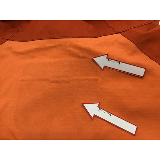 モンベルでは、レインウエアに求められる耐水圧20,000mm以上をクリアした素材のみを使用しています。