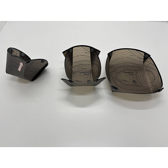 折りたたみ食器(カップ、ディッシュ、ボウルの3点セット)です。簡単に組み立てられて、軽量、しかもフラットになり持ち運びや収納に便利。