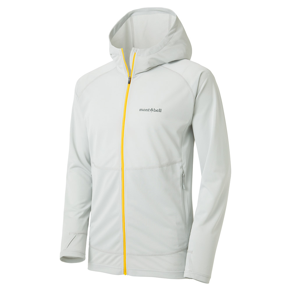 通気性とUVカット効果を両立した、日除けに適したパーカです。生地にはっ水加工を施しているので、水に濡れても保水しにくく、水辺で使用しても快適な着心地です。フードと手の甲までカバーする袖により、効果的に日差しを遮ります。小物の収納に便利なハンドポケット付きです。