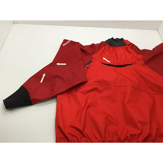 モンベル独自の防水透湿性素材ドライテック®を使用した、秋や春のパドルスポーツに適したセミドライジャケット。動きやすさを高めながら、水の浸入を防ぐ工夫が施されています。着用時には空気抜きが必要です。