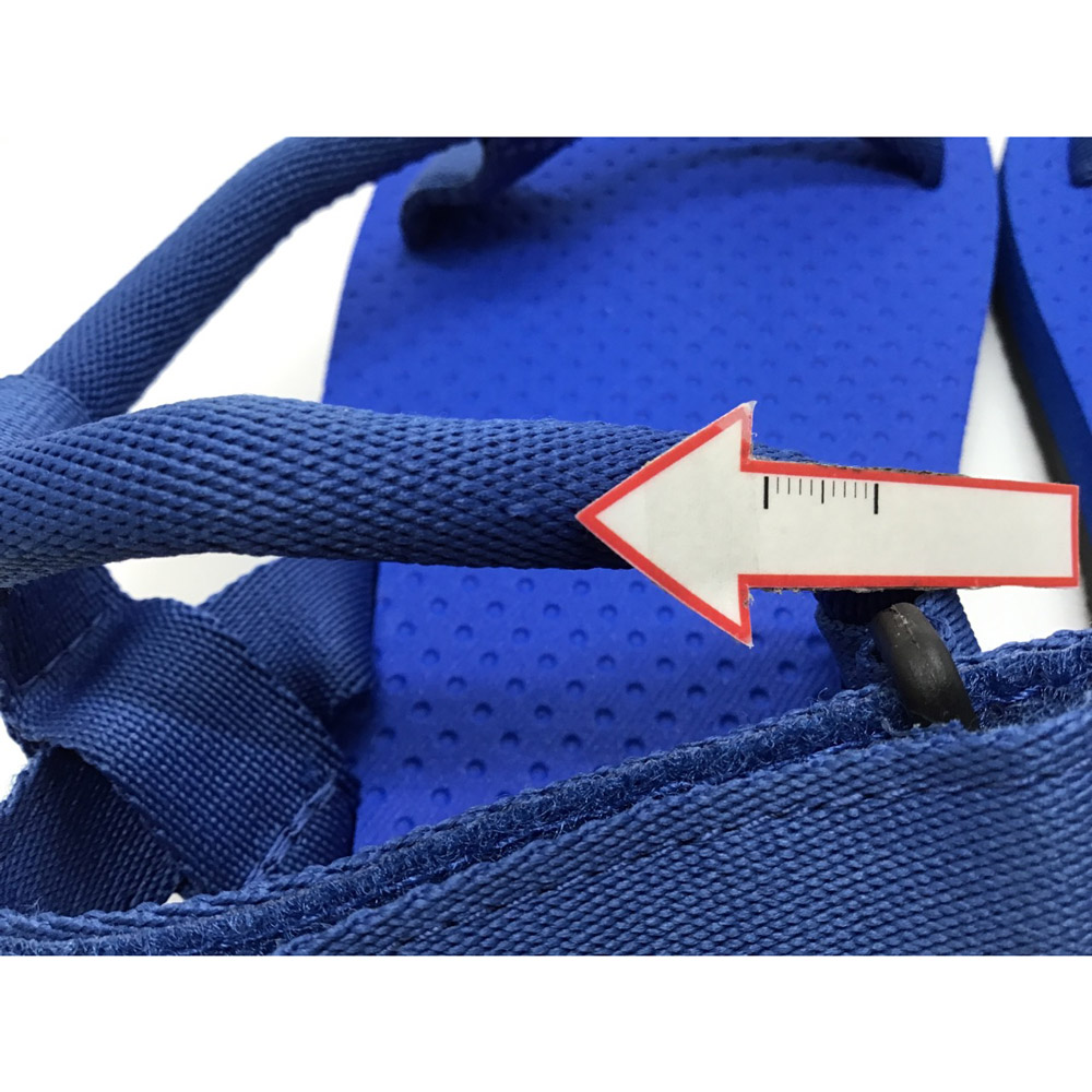 靴下を着用したままでも履くことができる「ソックオンサンダル」に、かかとを固定するバックストラップを設けることで運動時にも脱げにくくなっています。鼻緒には肌当たりがやさしい素材を使用しています。