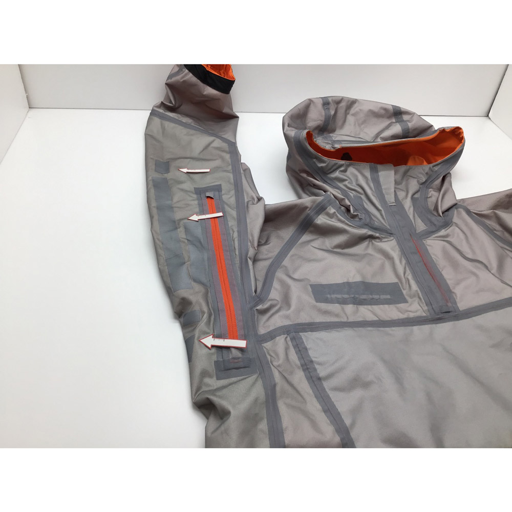 機能性とコストパフォーマンスを高い次元で両立したアノラックです。独自の防水透湿性素材と、新開発の優れた耐摩耗性を備えた高強度素材を組み合わせることで、日々の使用にも耐えうる頑丈さと快適性を実現しました。農作業に適したさまざまな機能を装備し、ワークウエアとして使用していただけます。身幅に適度なゆとりをもたせたレイヤリングしやすいシルエットです。前身頃に大容量のポケットを設けています。