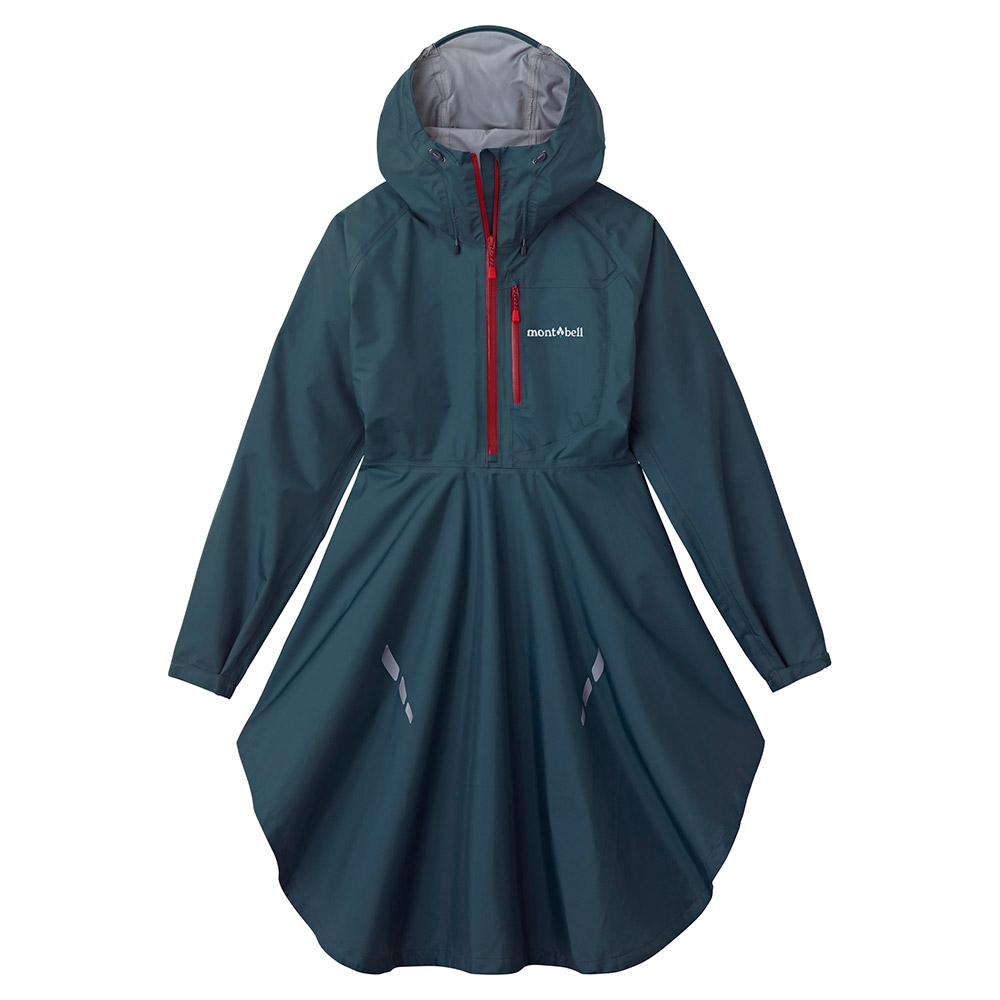 モンベル独自の防水透湿性素材ドライテックを使用した、機能的な車椅子用のレインウエアです。座った姿勢に合わせたパターンで裁断することで、膝に雨水が溜まりにくくなっています。
