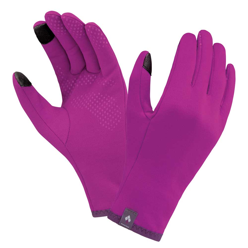 ストレッチ性に優れるしなやかな生地を使用した中厚手の女性用グローブです。裏面を起毛させることで、適度な保温性と吸水拡散性を備えています。フィット感が高く、オーバーグローブとの併用にも適しています。指先と手のひらには滑り止めプリントを施しています。