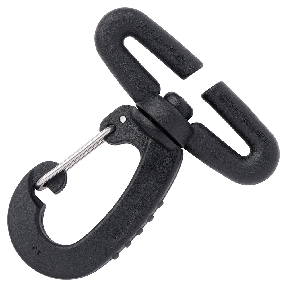バッグやバックパックのバックルが割れた際に後付けできる応急修理用フックです。スリットがあるので、末端が閉じたテープに取り付けできる回転タイプのフックです。2個セット。