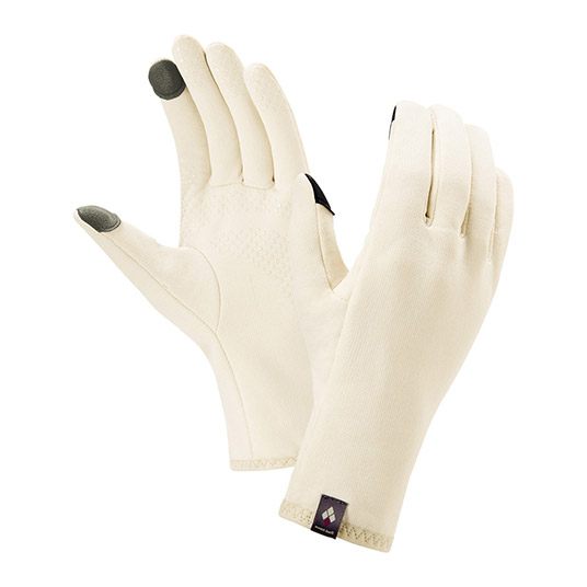 ストレッチ性に優れるしなやかな生地を使用した中厚手の女性用グローブです。裏面を起毛させることで、適度な保温性と吸水拡散性を備えています。フィット感が高く、オーバーグローブとの併用にも適しています。指先と手のひらには滑り止めプリントを施しています。