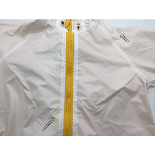 モンベルでは、レインウエアに求められる耐水圧20,000mm以上をクリアした素材のみを使用しています。